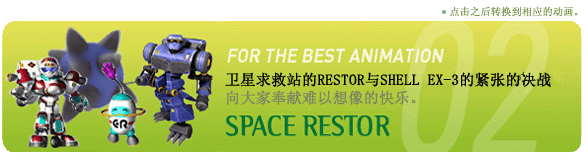 是受到二台不明机器攻击的求救信号。紧急出动的RESTOR卫星从求救站的信息机器人E.R那里得到有关月亮的信息之后飞行抵达月亮基地。