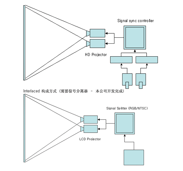 通过把信号直接分离的方式,对影像的程序化或者根据活动的影像的运行部分更加容易,本公司 拥有许多采用INTERLACED构成方式,构建低价值、高品质的虚拟现实系统的意见。